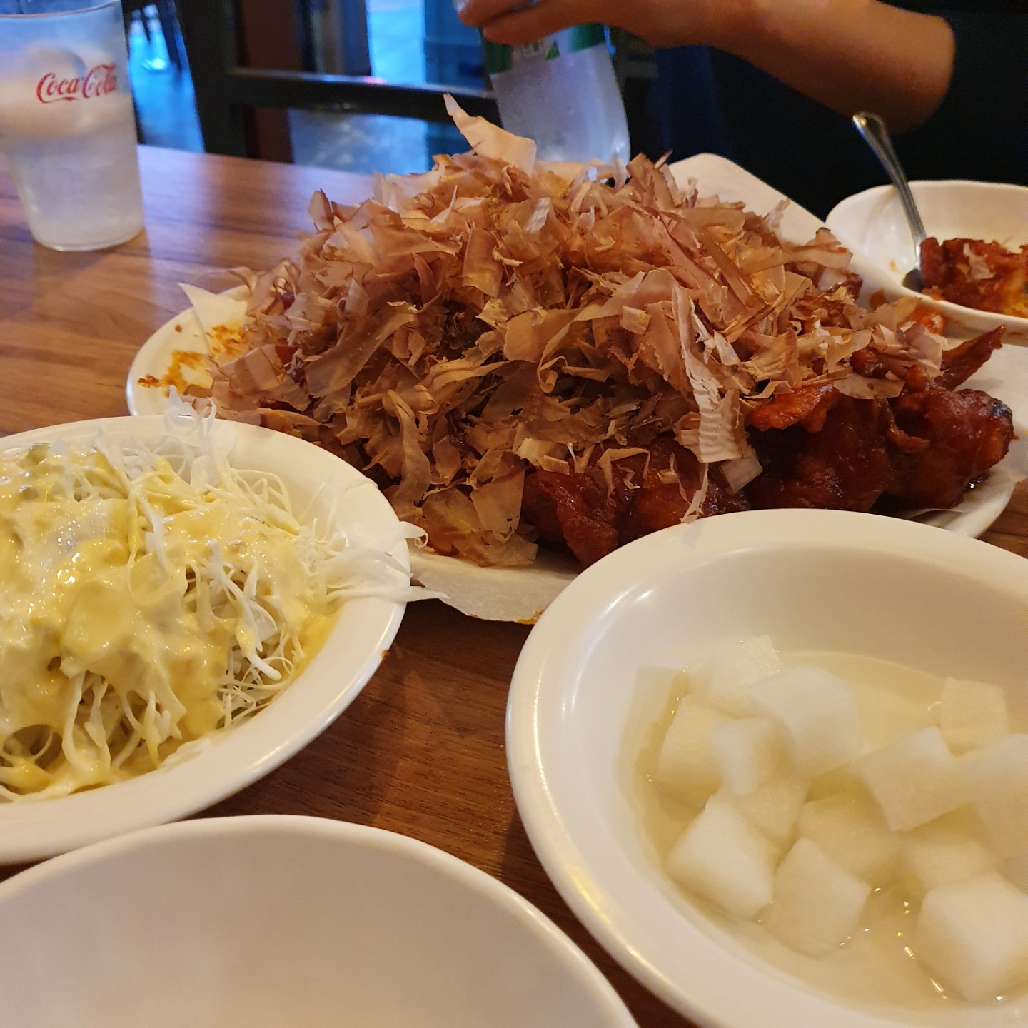 가쓰오부시가 올려져 있는 치킨을 먹어본 건 이번이 처음이었는데